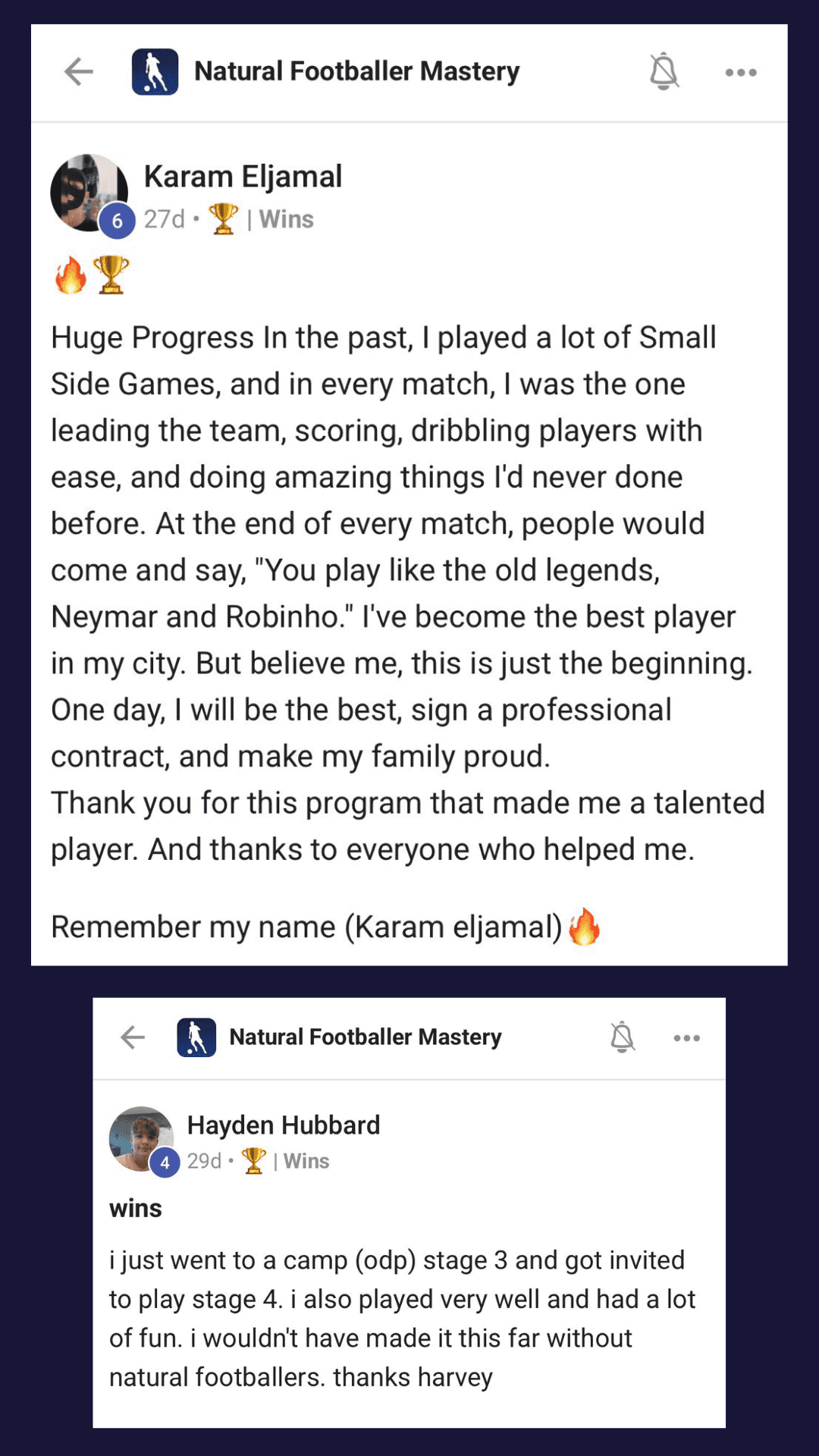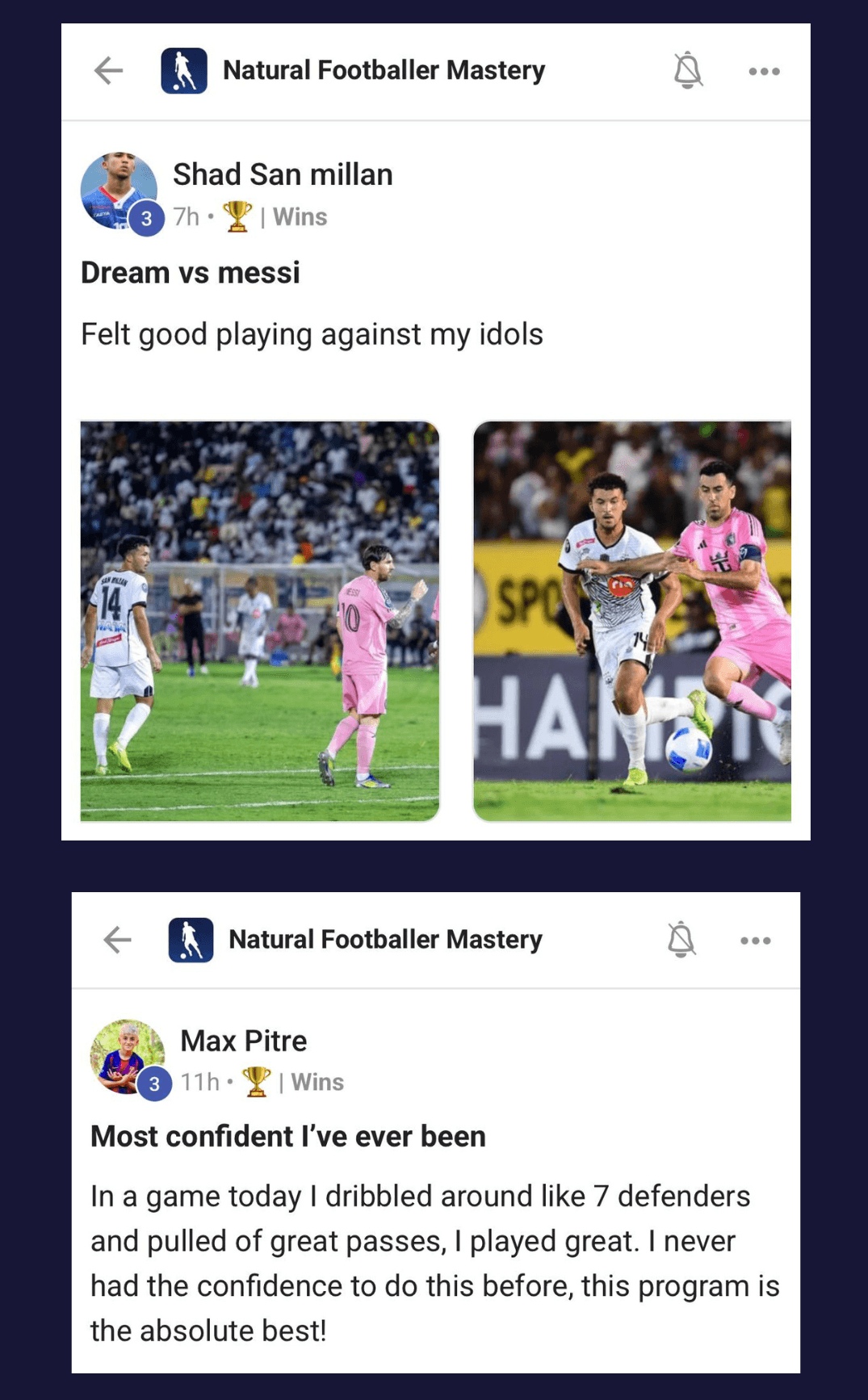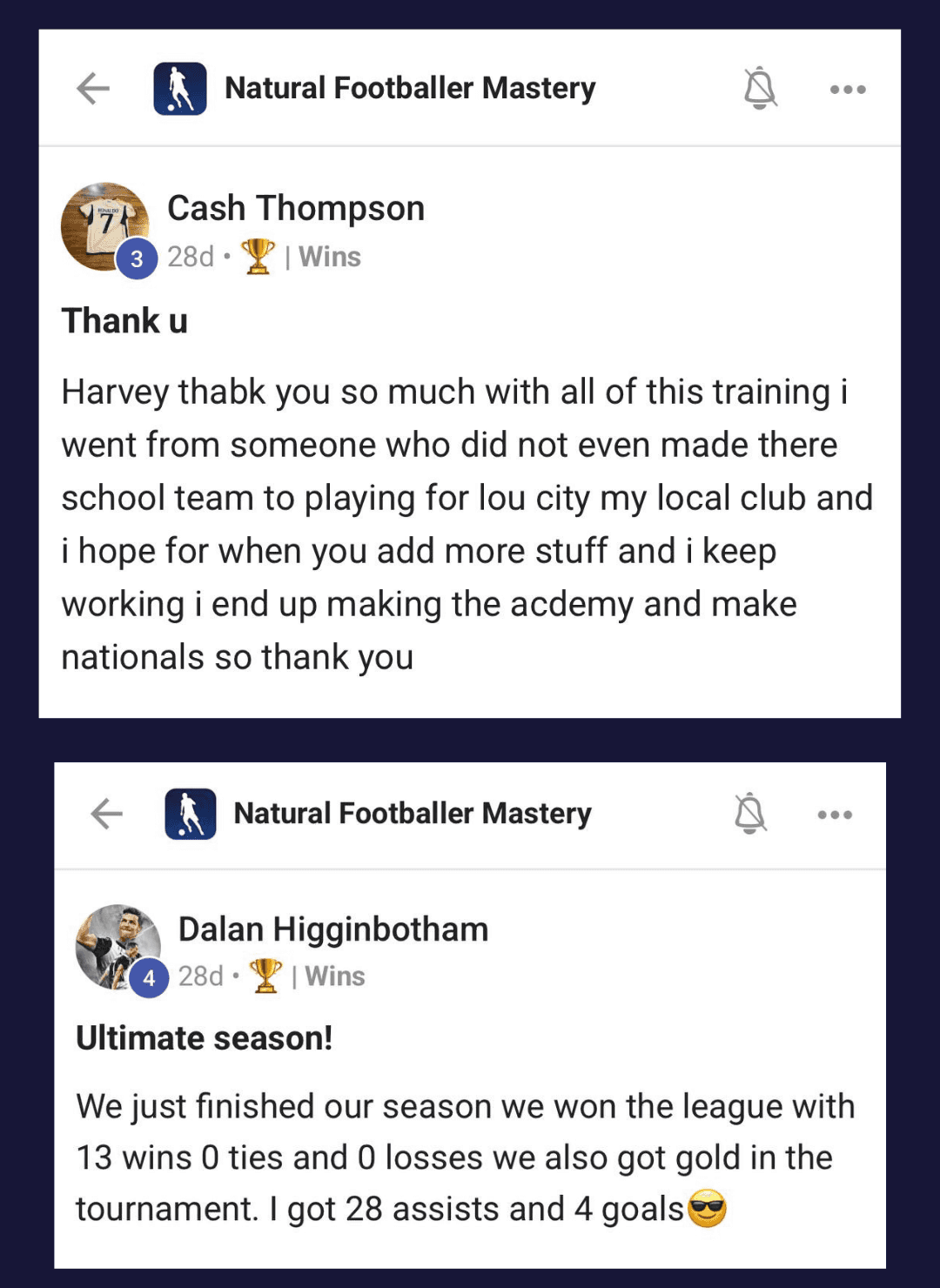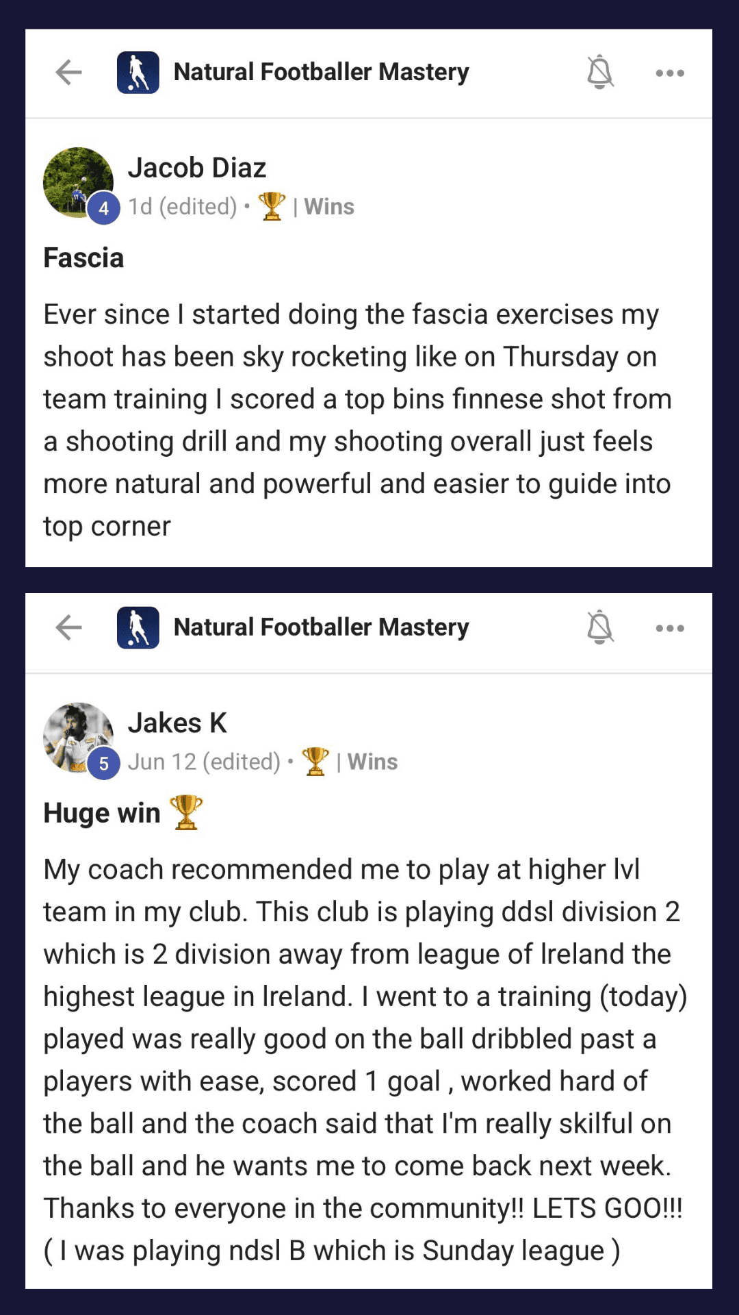 Hear from satisfied players who've transformed their careers with the Natural Footballer Mastery.